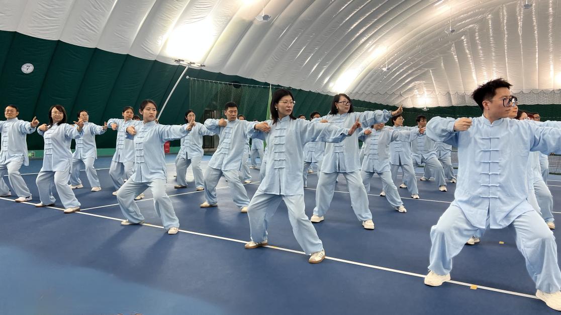 学院工会接到比赛通知后迅速响应,利用此契机积极动员教职工开展八段锦练习,并从其中组建起30人的参赛队伍。每周组织老师们集中训练,形成固定“工间操时间”,促进大家强身健体,强化健康理念,提升文化自信。训练中,参赛队员们相互纠正动作细节,反复打磨招式衔接,凝聚起强大的团队合力。