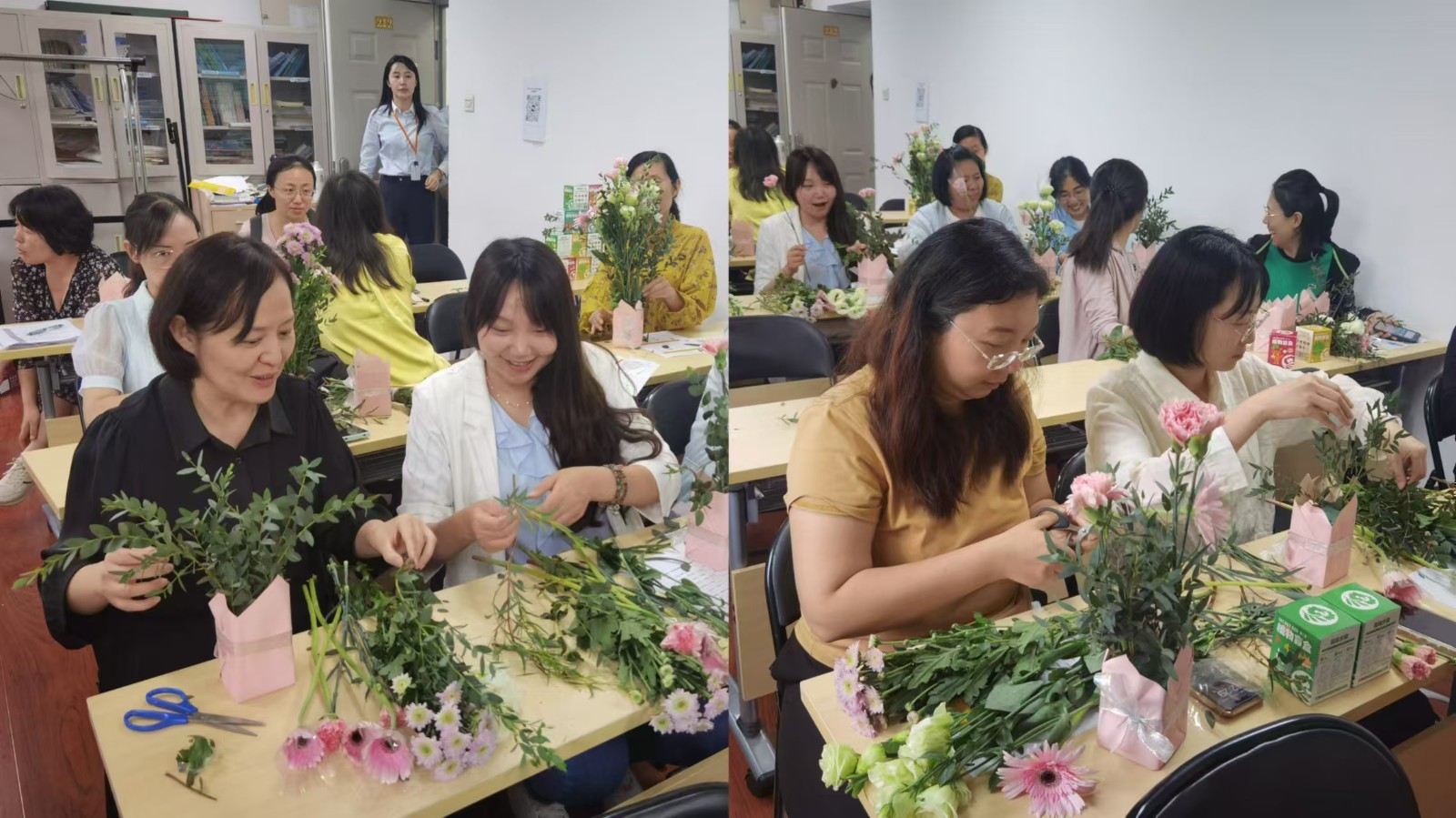 活动伊始,学院党委书记郭志恒代表学院向全体教师送上了节日的祝福与问候。随后,在工作人员的带领下,老师们欢声笑语的投入到插花创作之中。