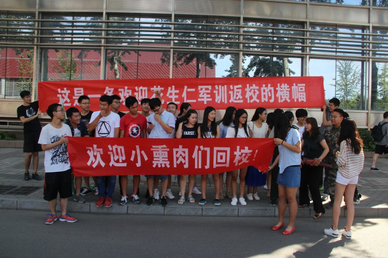 下午一点,迎接人员于万秀园门前集合,并准备了横幅标语等物品迎接新生们军训归来。下午1:32分,新生们进入学校,迎接人员同新生们互相问好,挥手致意。在新生们下车后,学生会成员主动帮助新生将行李运到宿舍。下午2点,迎接人员于万秀园前合影留念。